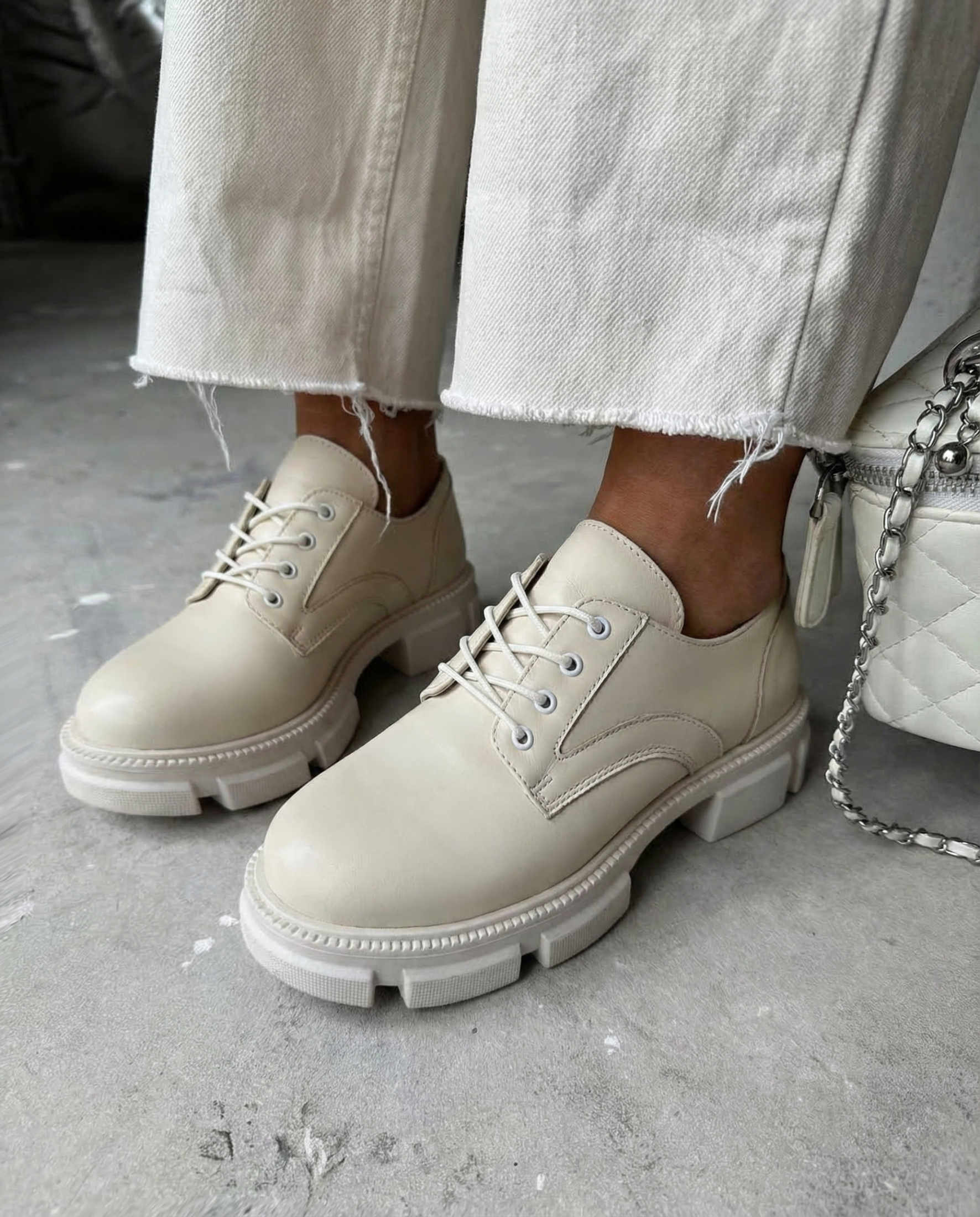 Обувки екрю естествена кожа