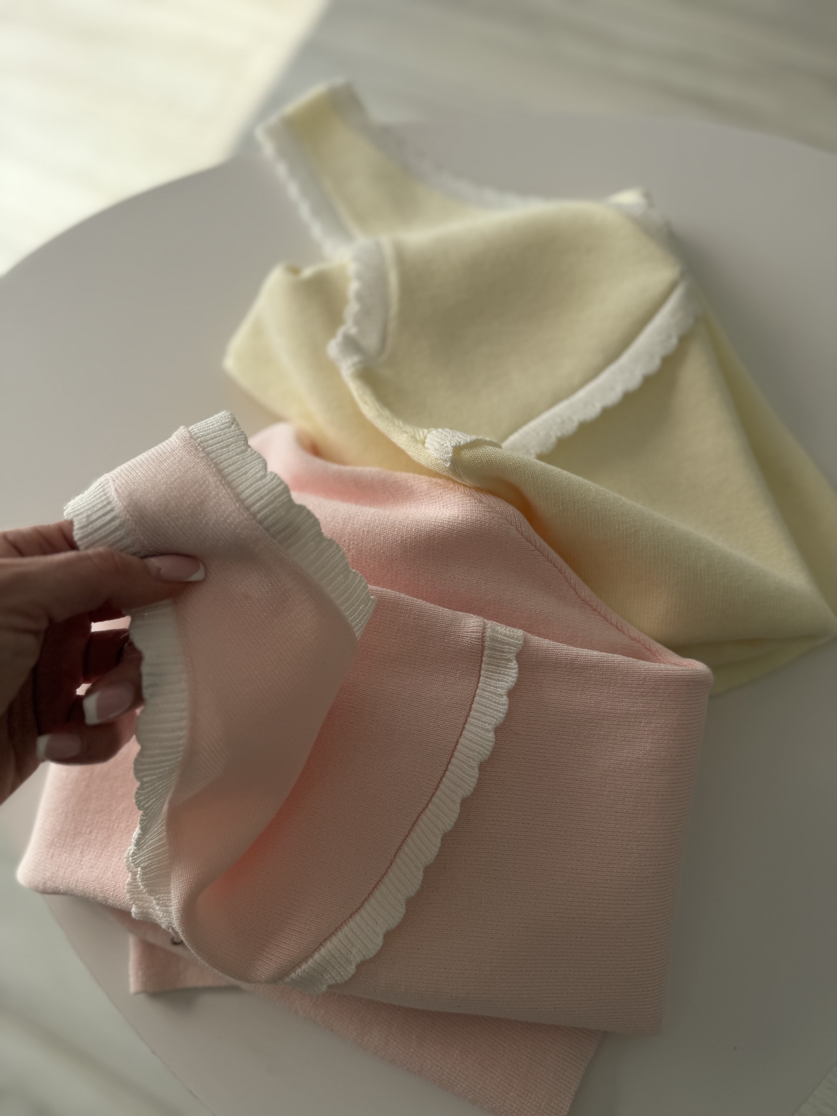 Елегантна дамска рокля от меко и приятно на допир фино плетиво, която подчертава силуета и създава женствена визия. Моделът е с V-образно деколте и деликатни декоративни кантове, които придават стилен и завършен вид. Горната част оформя бюста, а долната част пада свободно и създава леко разкроена линия за повече комфорт и движение.