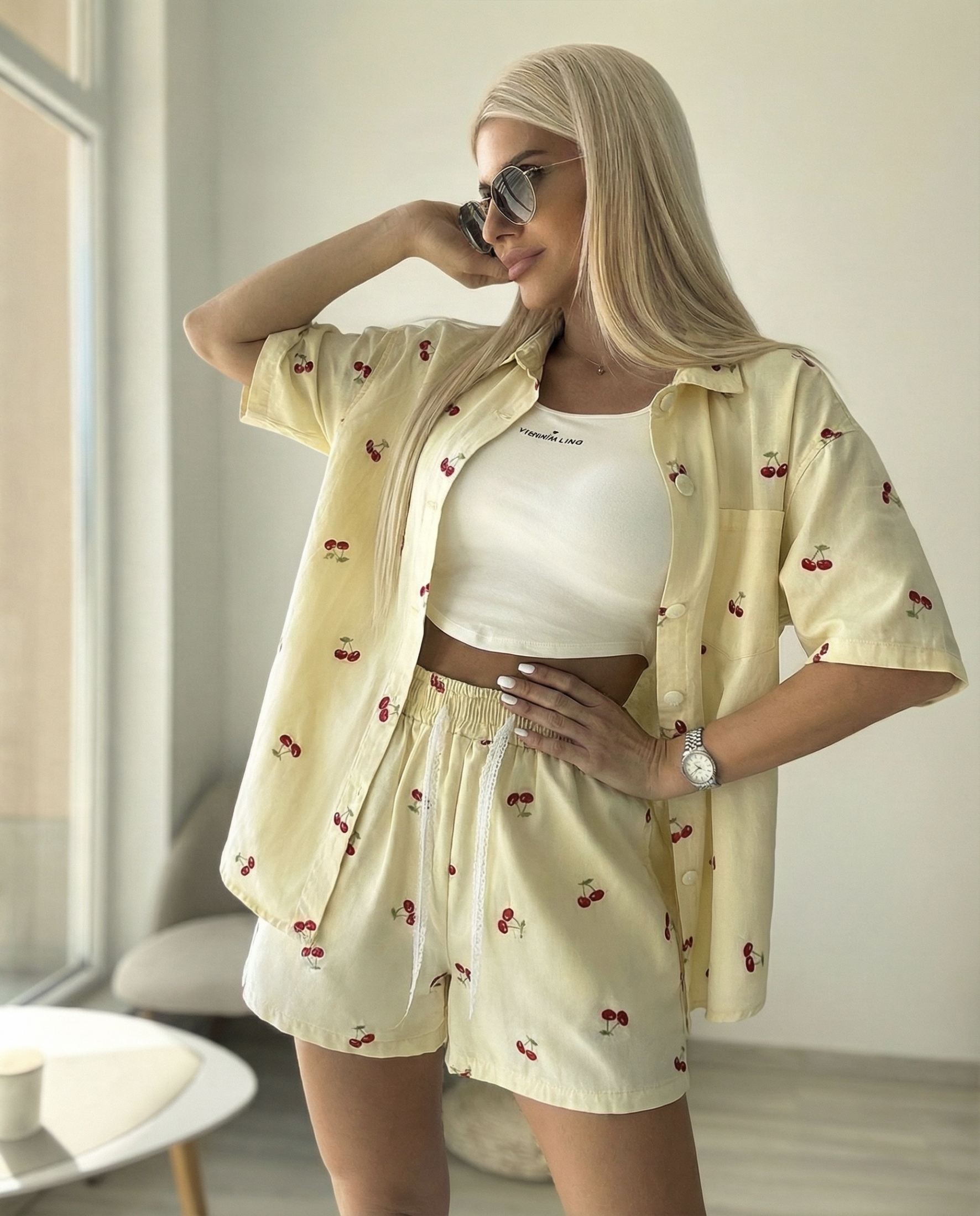 Начало Комплекти Жълт дънков комплект с черешки