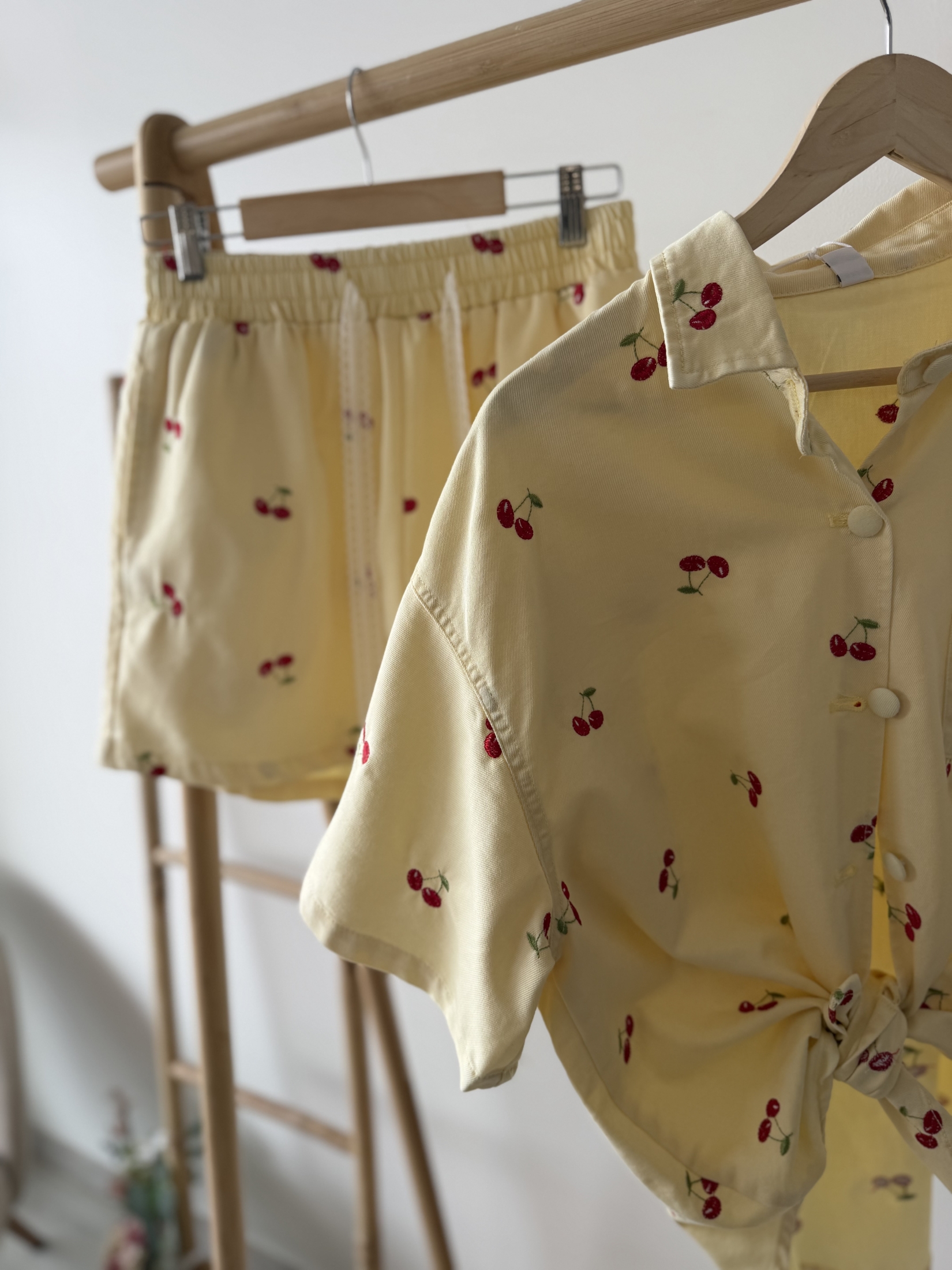 Жълт дънков комплект с черешки