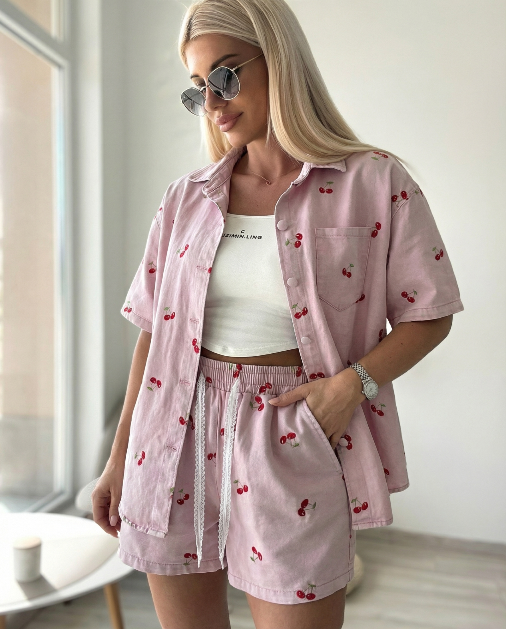 Розов дънков комплект с черешки