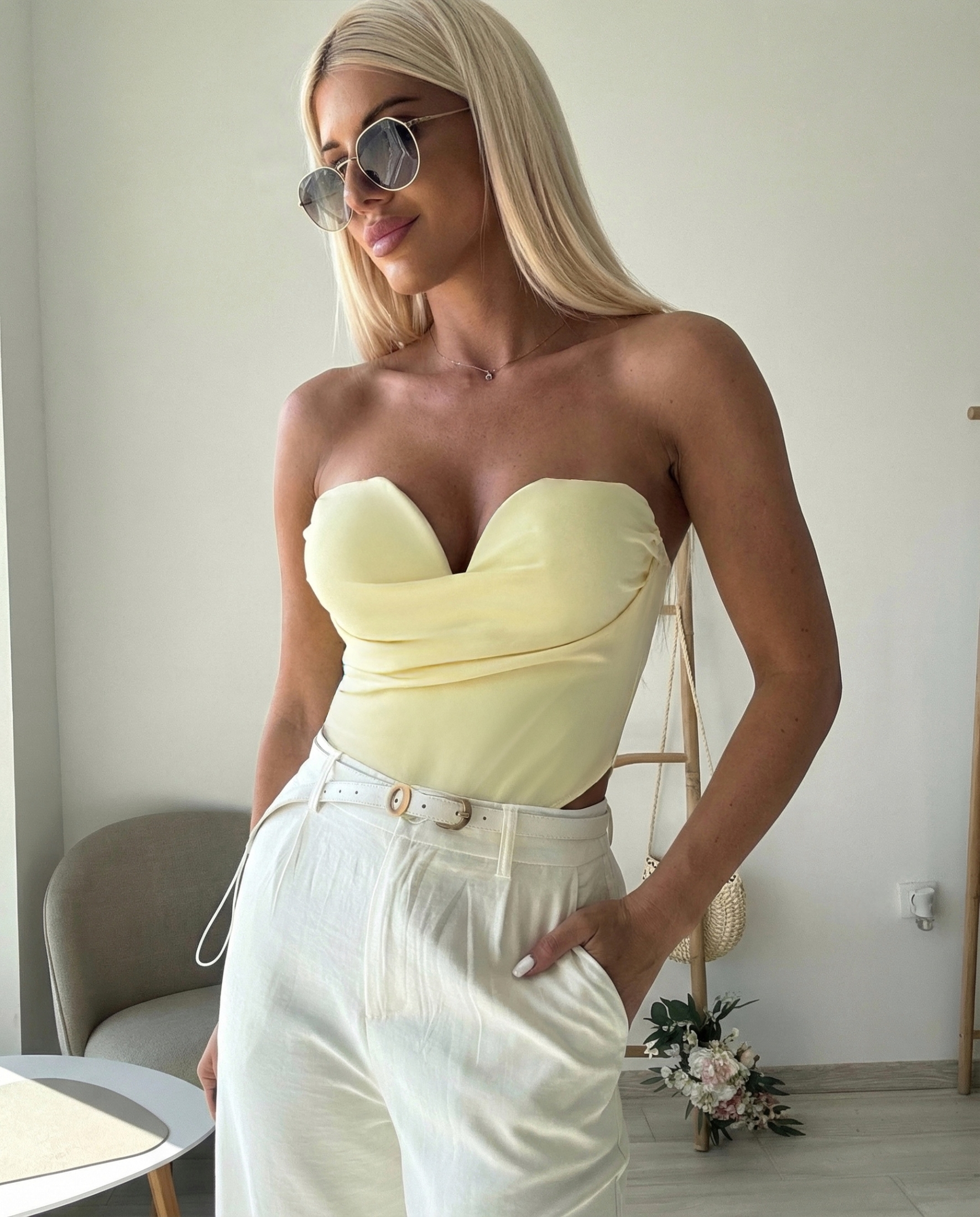 Елегантно боди тип бюстие с твърда чашка, създадено да подчертае и оформи бюста по изключително женствен начин. Моделът е с красиво сърцевидно деколте, което придава изискан и стилен акцент на визията.